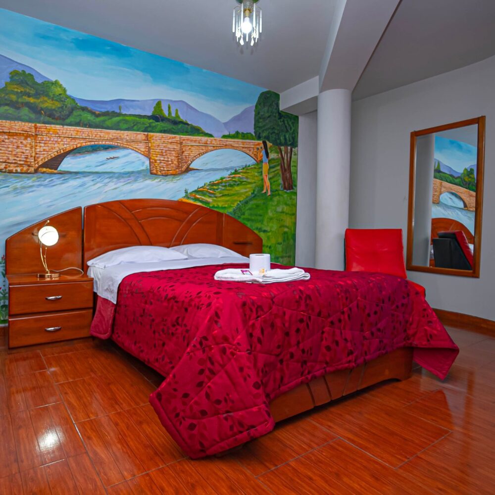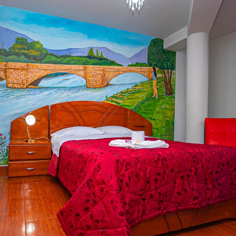 Sumérgete en la historia y el encanto de Huánuco en nuestra Habitación Temática Turística, un espacio único diseñado para rendir homenaje al icónico Puente Calicanto, uno de los símbolos más representativos de la ciudad. Esta habitación combina comodidad moderna con un diseño que refleja la riqueza cultural de la región, creando una experiencia memorable para los amantes del turismo y la historia.